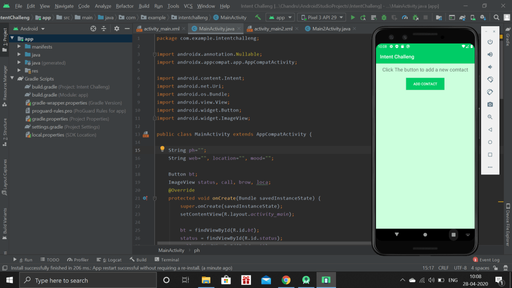 This day, I was again practicing with the Explicit intent since I felt like forgetting the concept. After practicing with that concept and strong with it, I started a new concept which is Implicit Intent.